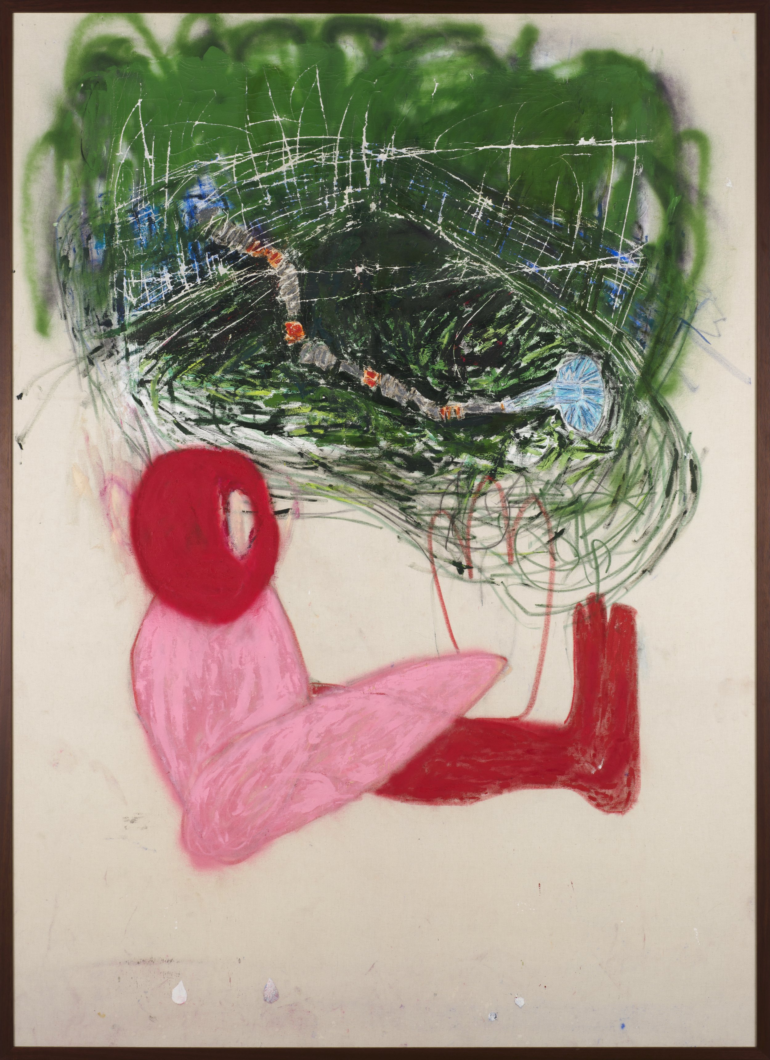 Gaspar Martinez has a painterly tendency to couple energetic, gestural mark-making, bold line work, vibrant palettes, sparely textured surfaces, and variably quirky compositional choices with a quietly humorous, subtly critical sense of curiosity. His subjects of playfully abstract representation have been fgures and things, places and rooms, objects real and imagined, and formal riffs on explorations of color and geometric abstraction. In Nausea, the London-based Argentinian painter coheres most all such expressive means and modes in a body of work merging notions of distaste, disgust, and questionable utility with ideals of rather improbably sourced joy, grace, and beauty.